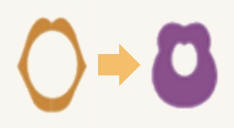 下の図を見てイメージしながら、R音の舌を作ってみてください。