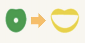 • 日本語のオよりも少し唇をすぼめてオを発音し(ゆるめのWの口)→横オープンにしてオィを発音